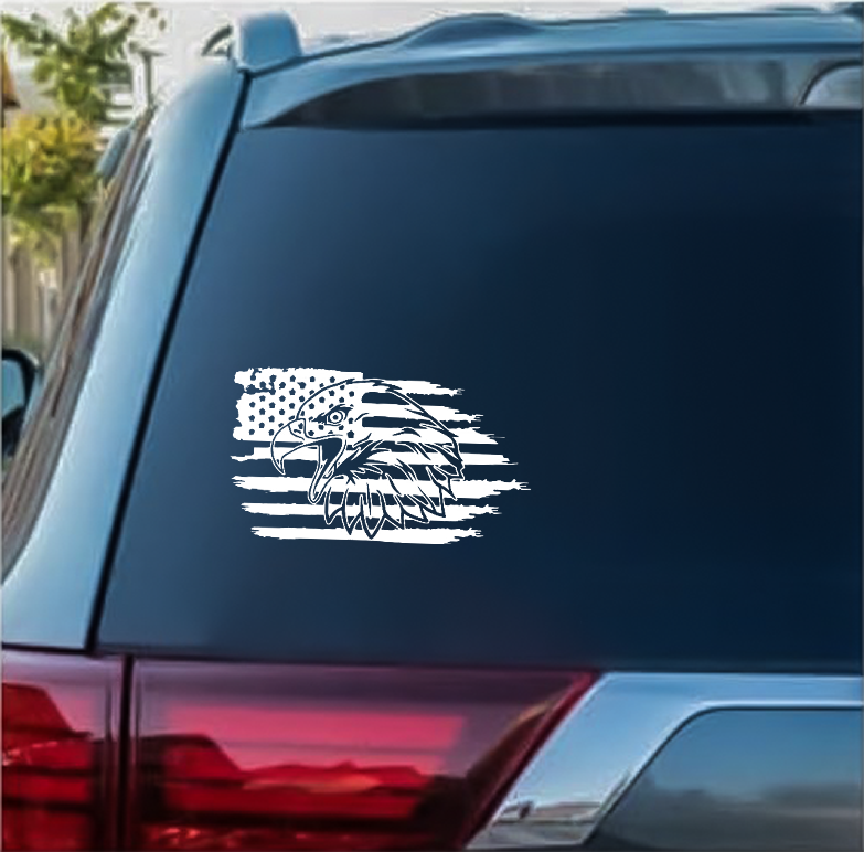 Bald Eagle Weathered American Flag Window Decal Sticker