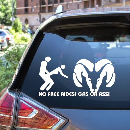 Dodge Ram No Free Rides Gas Or Ass Window Decal Sticker – Dodge Decal Sticker