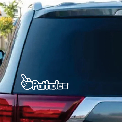 F Potholes Middle Finger Window Decal Sticker