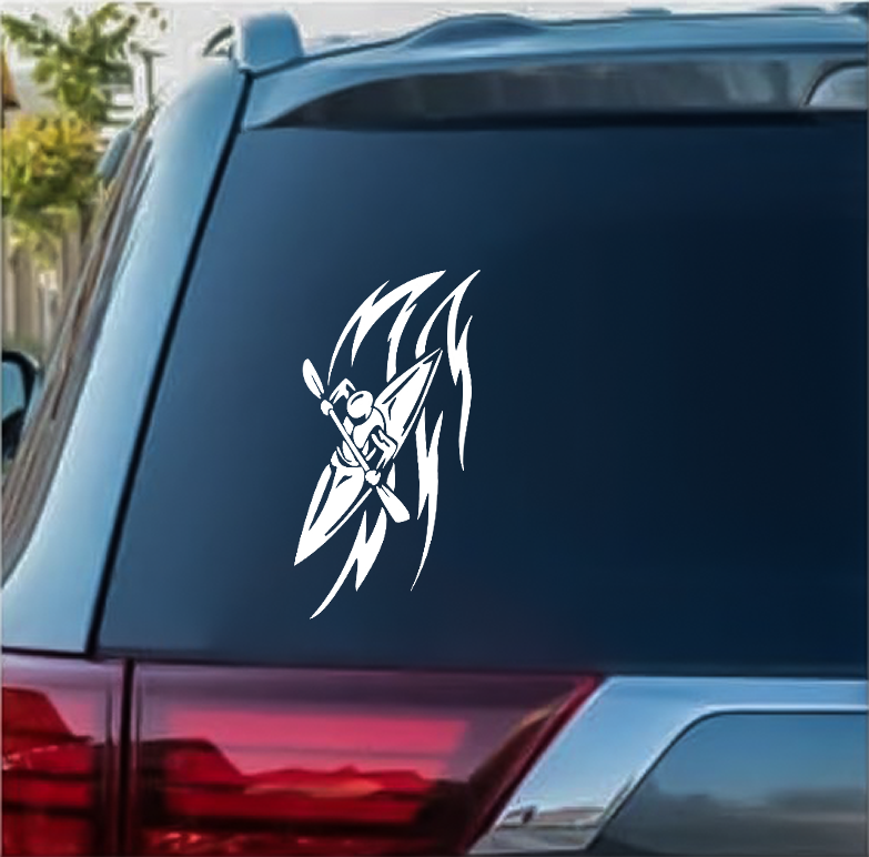 The kayak sticker Fits beautifully on the back window of my truck. Read the directions . Its application is straight forward and simple to execute. Looks great.