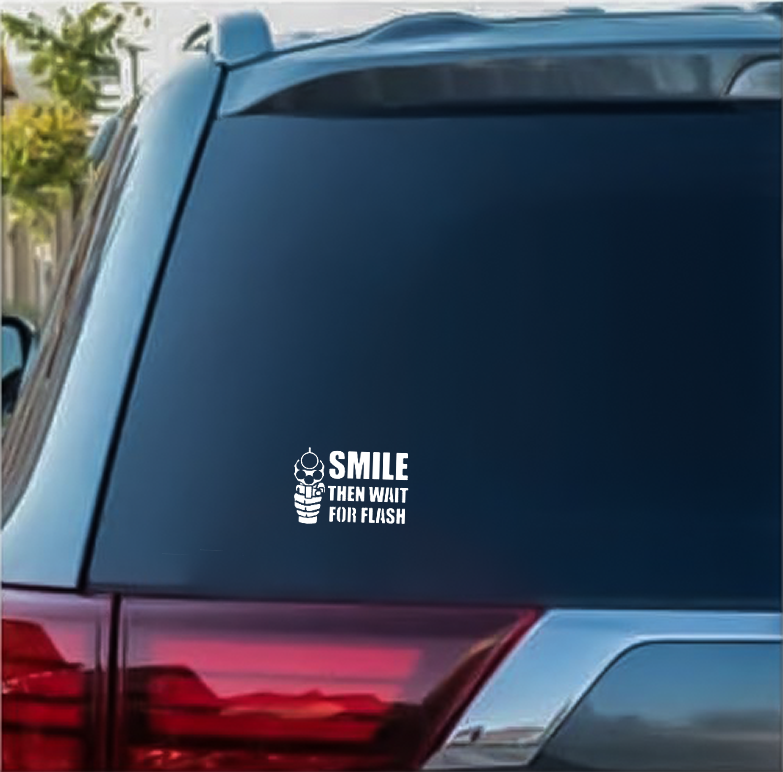 Smile Then Wait For Flash Gun Window Decal Sticker