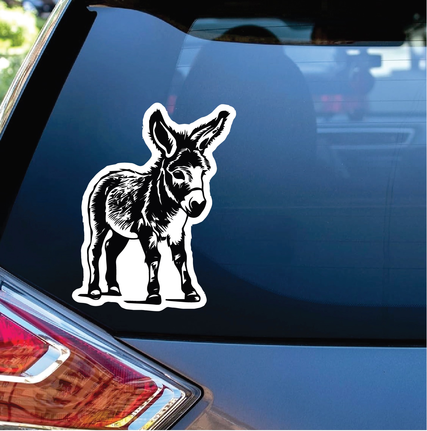 This Cute Donkey Standing Decal Sticker is available in a variety of sizes, colors and fonts and are made right here in America.