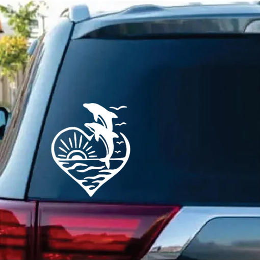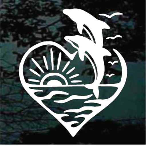 Dolphins jumping heart sunset window decal Sticker