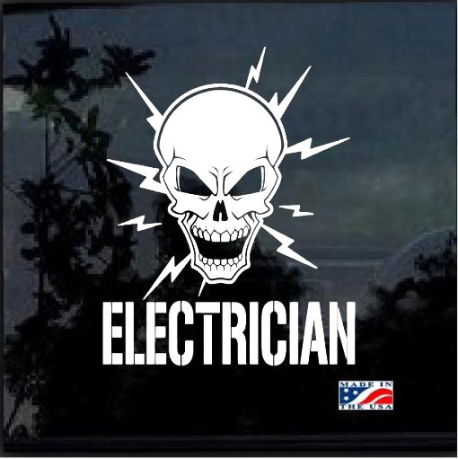 Electrician Lineman Skull Window Decal Sticker