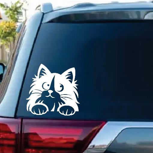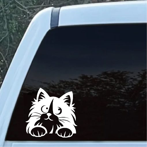 Fluffy Cat Kitten Peeking Cute Window Decal Sticker