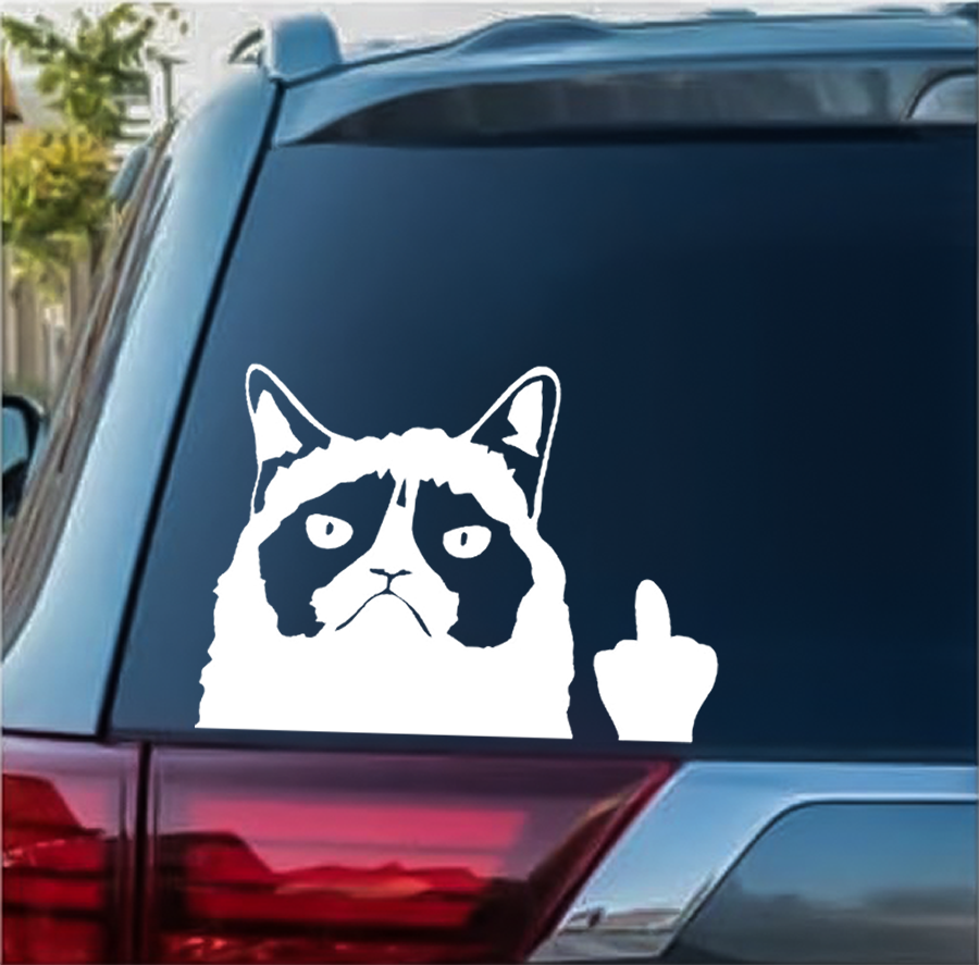 Grumpy Cat Flipping Bird Window Decal Sticker