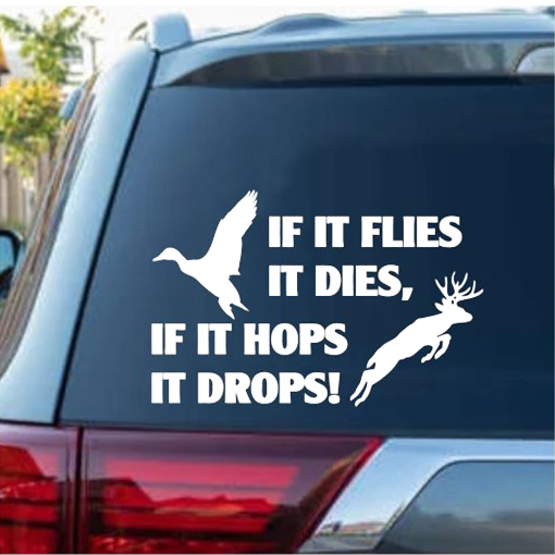 Flies Dies Hops Drops Hunting Window Decal Sticker