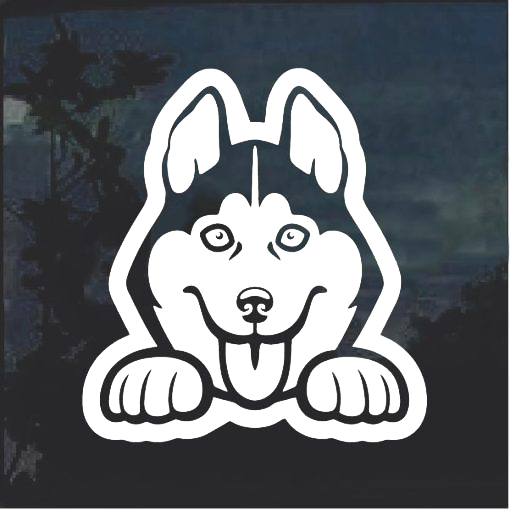 Husky Peeking Window Decal Sticker