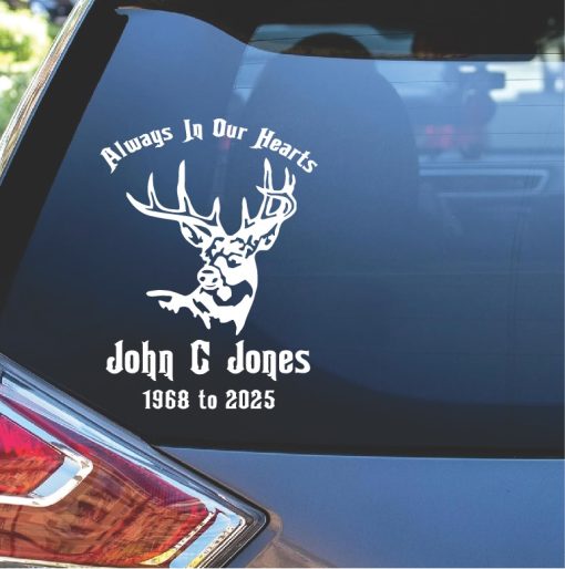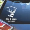This In Memory Deer Head Hunting Decal Sticker is available in a variety of sizes, colors and fonts and are made right here in America.