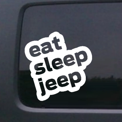 This Eat Sleep - Jeep Wrangler Decals is available in a variety of sizes, colors and fonts and are made right here in America.
