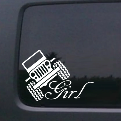 This Jeep Girl A3 - Jeep Wrangler Decals is available in a variety of sizes, colors and fonts and are made right here in America.