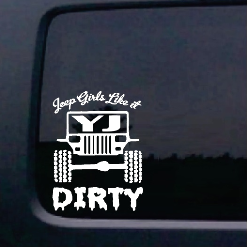 This Jeep Girls Like it Dirty YJ Wrangler Jeep - Jeep Wrangler Decals is available in a variety of sizes, colors and fonts and are made right here in America.