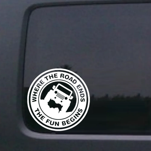 This Jeep Road Ends Fun Begins - Jeep Wrangler Decals is available in a variety of sizes, colors and fonts and are made right here in America.