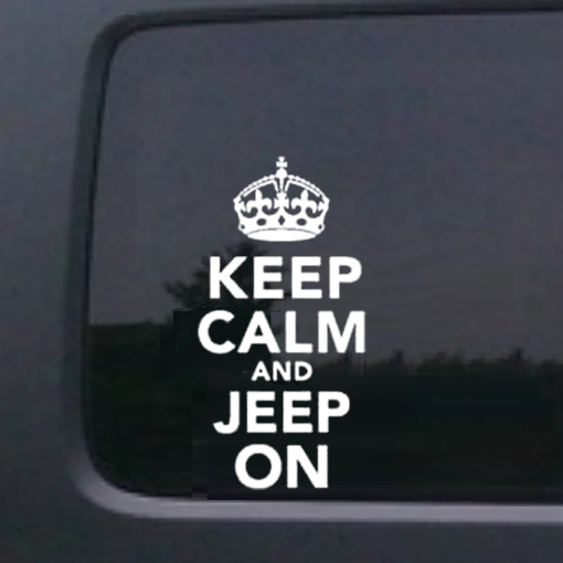 This Keep Calm Jeep On - Jeep Wrangler Decals is available in a variety of sizes, colors and fonts and are made right here in America.