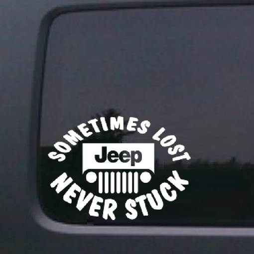 This Maybe Lost Never Stuck - Jeep Wrangler Decals is available in a variety of sizes, colors and fonts and are made right here in America.