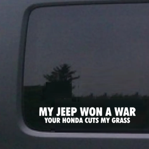 This My Jeep Won a War - Jeep Wrangler Decals is available in a variety of sizes, colors and fonts and are made right here in America.