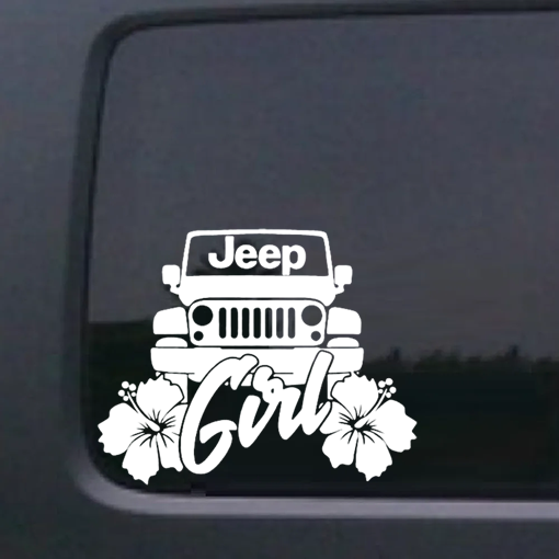 This Jeep Girl Hibiscus Jeep Decal Sticker is available in a variety of sizes, colors and fonts and are made right here in America.