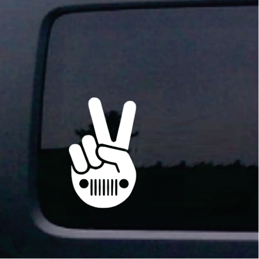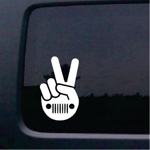This Jeep wave Retro Peace Sign Decal Sticker is available in a variety of sizes, colors and fonts and are made right here in America.