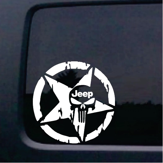 Jeep Weathered Star Punisher Skull Window Decal Sticker