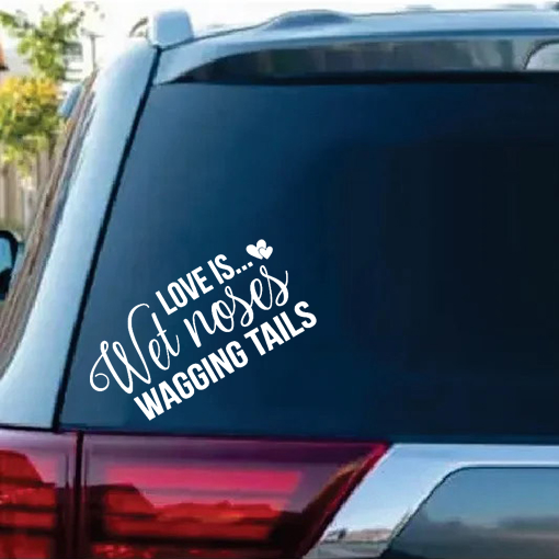 Love is Wet Noses and Wagging Tails Window Decal Sticker