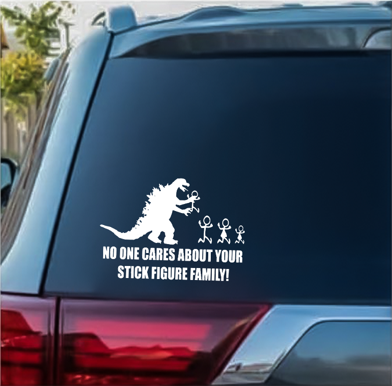No One Cares About Your Stick Figure Family Godzilla window decal Sticker