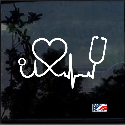 Heartbeat Stethoscope and Heart nurse Window Decal Sticker