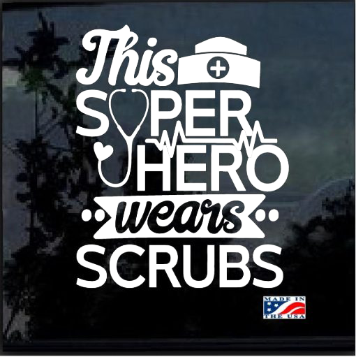 This Superhero Wears Scrubs Nurse Cna Window Decal Sticker