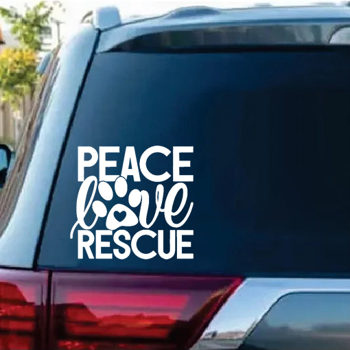 Peace Love Rescue Dog Paw Window Decal Sticker