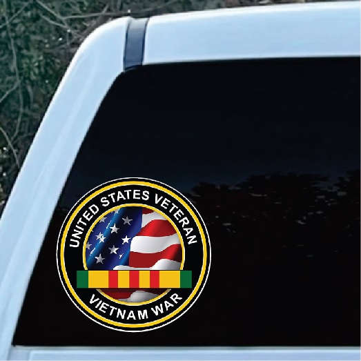 This Vietnam Veteran Round Full Color Decal Sticker is available in a variety of sizes, colors and fonts and are made right here in America.