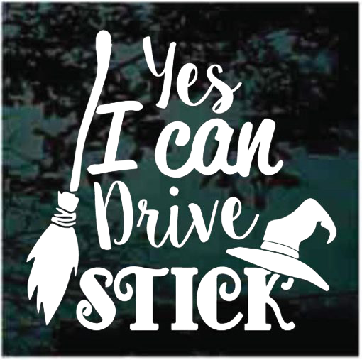 Yes I Can Drive A Stick Witch Broom Hat Decal Sticker
